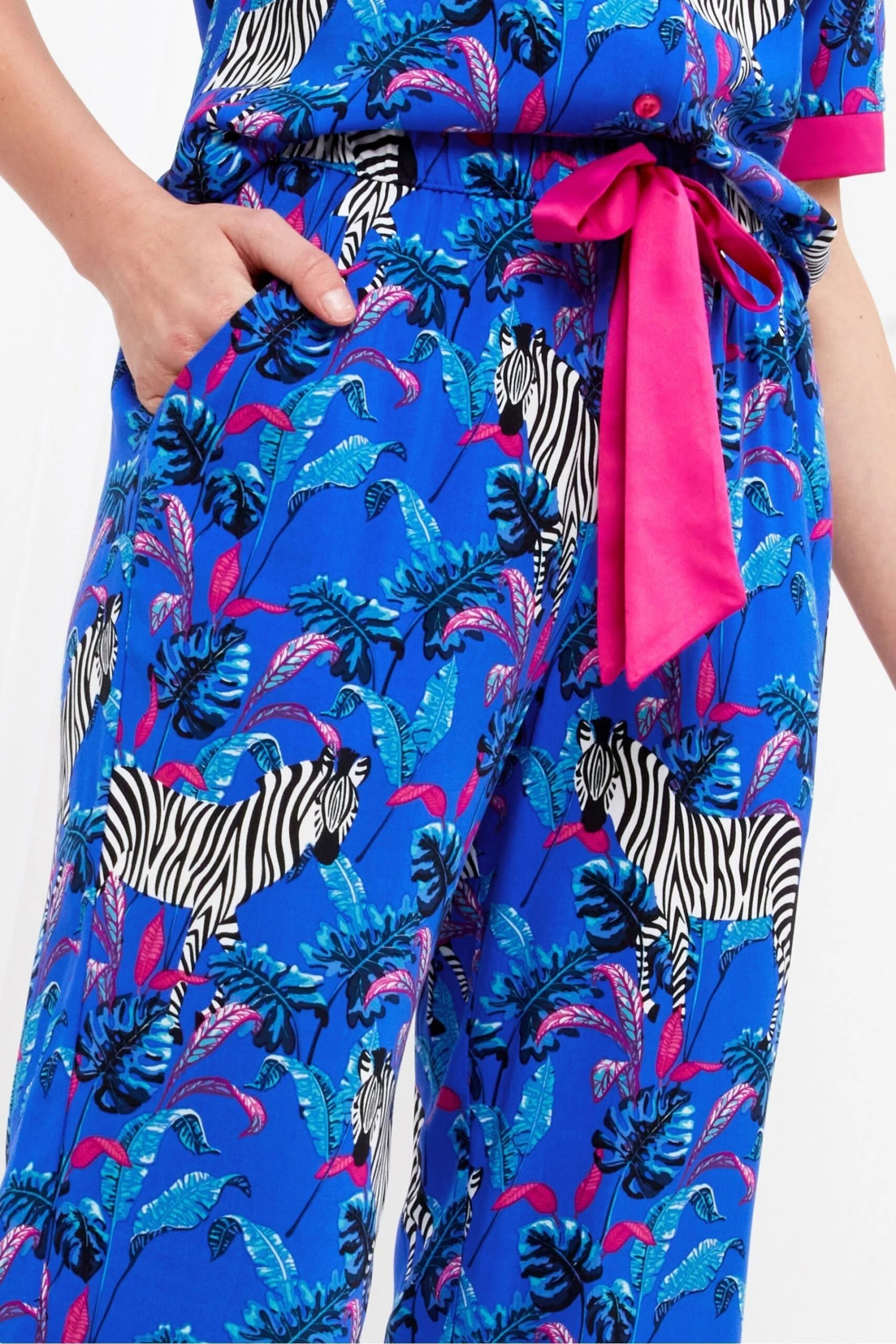 Hauptmaterial 100 % Viskose. Besatz: 98 % Polyester, 2 % Elasthan.