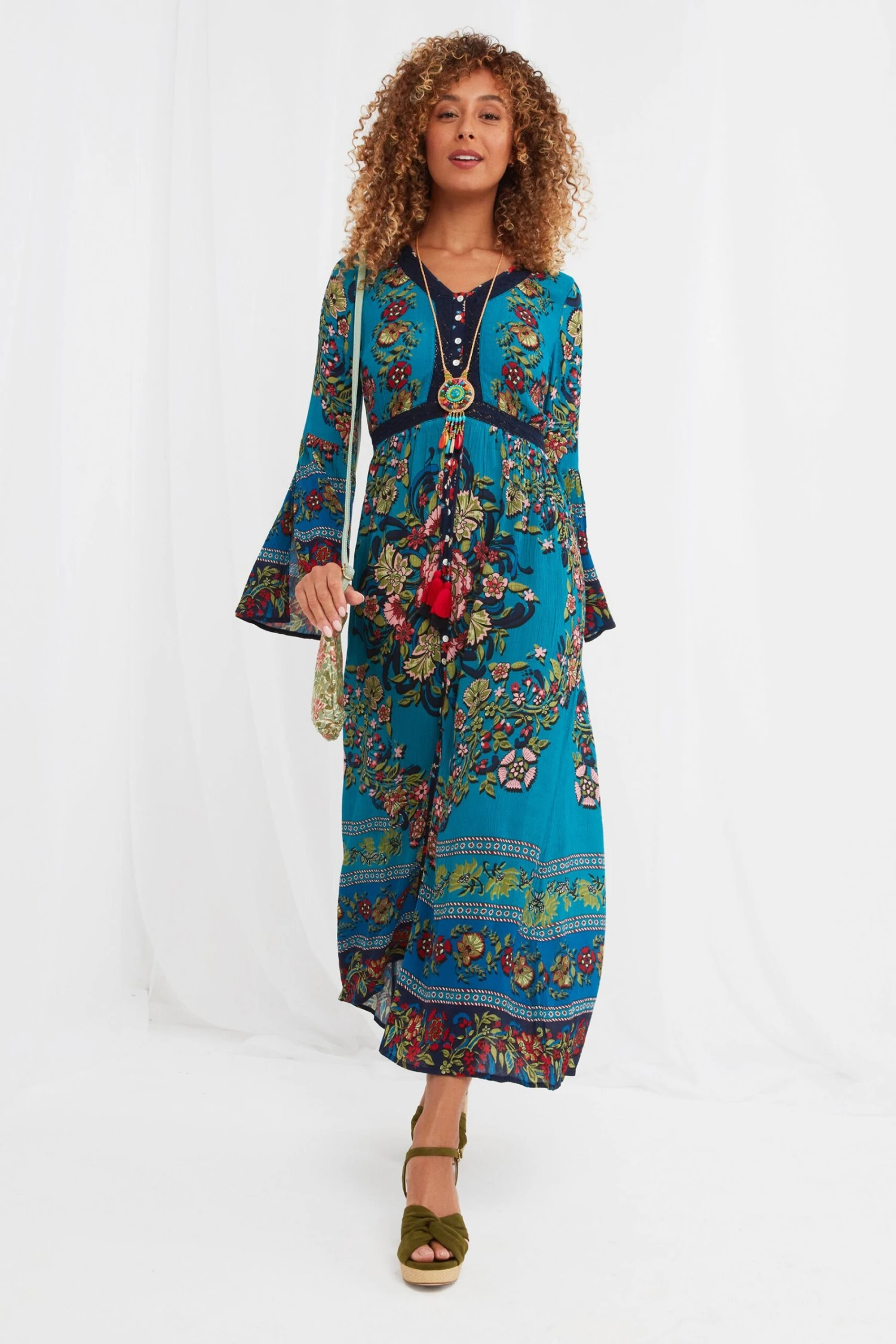 Hauptmaterial 100 % Viskose. Besatz: 100 % Baumwolle.